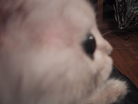 初めの頃は、動作が緩慢だったたので結構きれいに写真に納めることができました。だんだん、カメラのフォーカスライトが気になってきたらしく、写そうとするとすぐ動いてしまいので、寝込みを襲うとかしないとなかなか写真が撮れません。 (私のカメラは、フォーカスライトをオフにはできません。) |