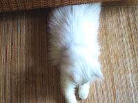 そのうち大きくなったら、ソファの下には潜り込めまいと期待していても、未だにジタバタしながら潜り込むヴィッキー。入るときは窮屈でも、いったん入ってしまえば意外に高さのある空間が広がっているソファの下。 チンチラの尻尾が太くて短いなんて書いてあったりしますが、どうして太くて長いです。 |